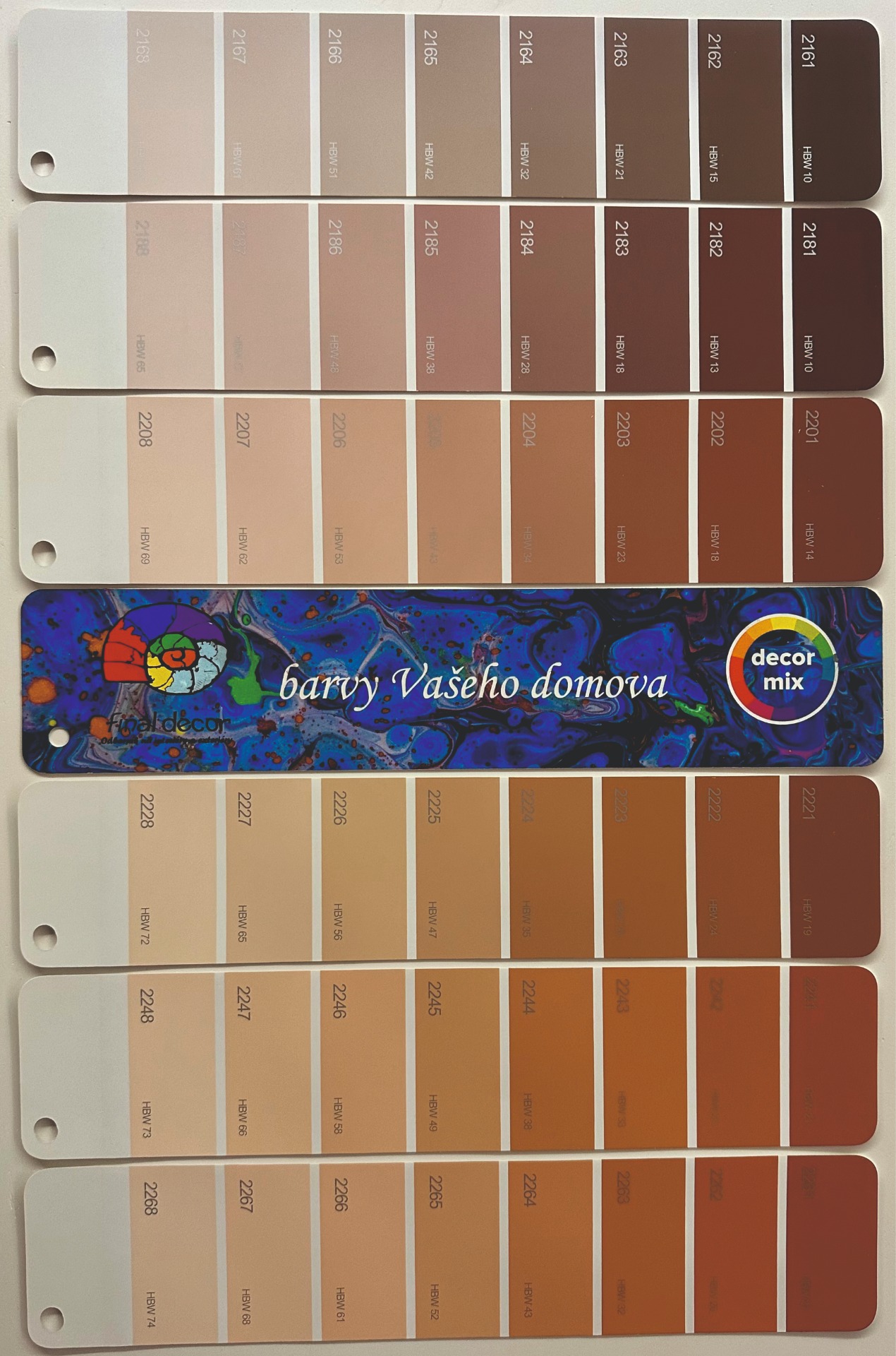 Náhledy odstínů jsou pouze orientační, pro lepší výsledek se zastavte u nás na prodejně v Karlových Varech, Kde Vám vzorník vypůjčíme a projdeme s Vámi i různé barevné kombinace.
